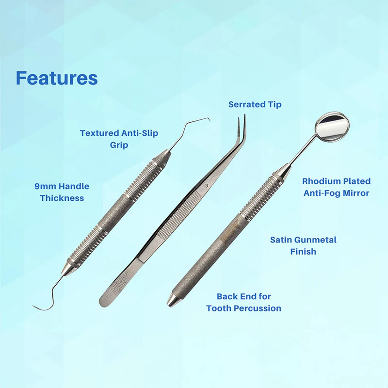 ARTMAN Dental Examination Tool Set – Mirror, Probe & Tweezer with Slip-Resistant Grip | Stainless Steel Professional Dentist Equipment